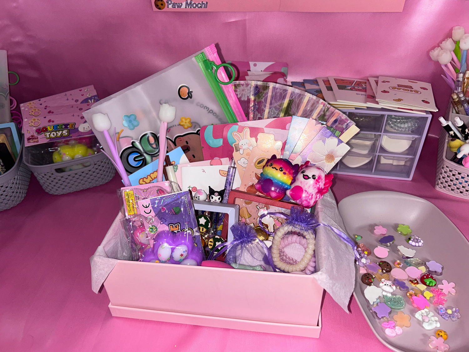 You could receive anything from pastel pens and mini notebooks to cute pencil cases, bookmarks, or hair ties. All handpicked, aesthetic, and themed around soft colours and adorable designs.