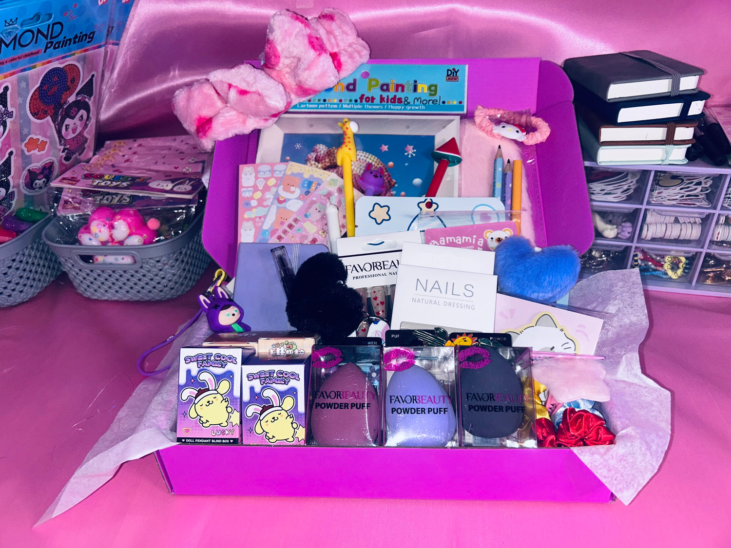 You could receive anything from pastel pens and mini notebooks to cute fidget toys, keychains, or hair ties. All handpicked, aesthetic, and themed around soft colours and adorable designs.